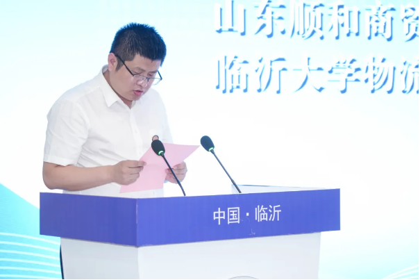 聯(lián)合會副會長孫立偉上臺宣讀《臨沂市商貿(mào)物流聯(lián)合會共同倡議》。
