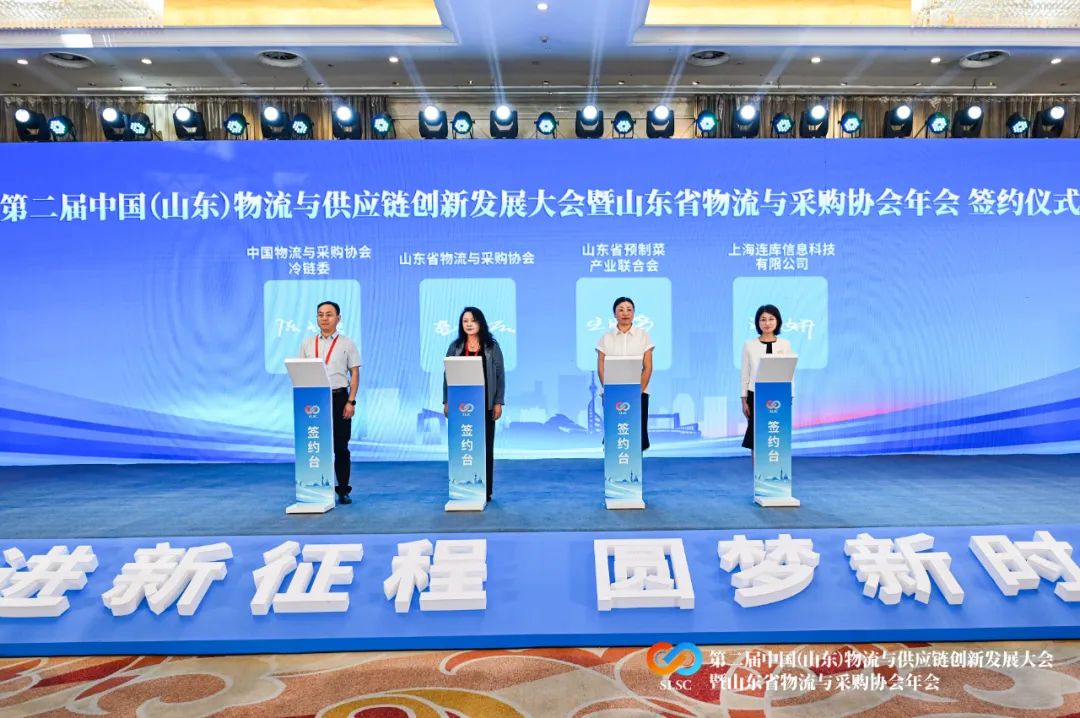 會(huì)上,中國(guó)物流與采購(gòu)聯(lián)合會(huì)冷鏈委、山東省物流與采購(gòu)協(xié)會(huì)、山東省預(yù)制菜產(chǎn)業(yè)聯(lián)合會(huì)、上海連庫(kù)信息科技有限公司進(jìn)行戰(zhàn)略簽約儀式。藍(lán)海(青島)私募基金管理有限公司、臨沂商貿(mào)物流科技產(chǎn)業(yè)研究院就共同組建臨沂商貿(mào)物流科技創(chuàng)業(yè)投資合伙企業(yè)(有限合伙)進(jìn)行戰(zhàn)略合作簽約。